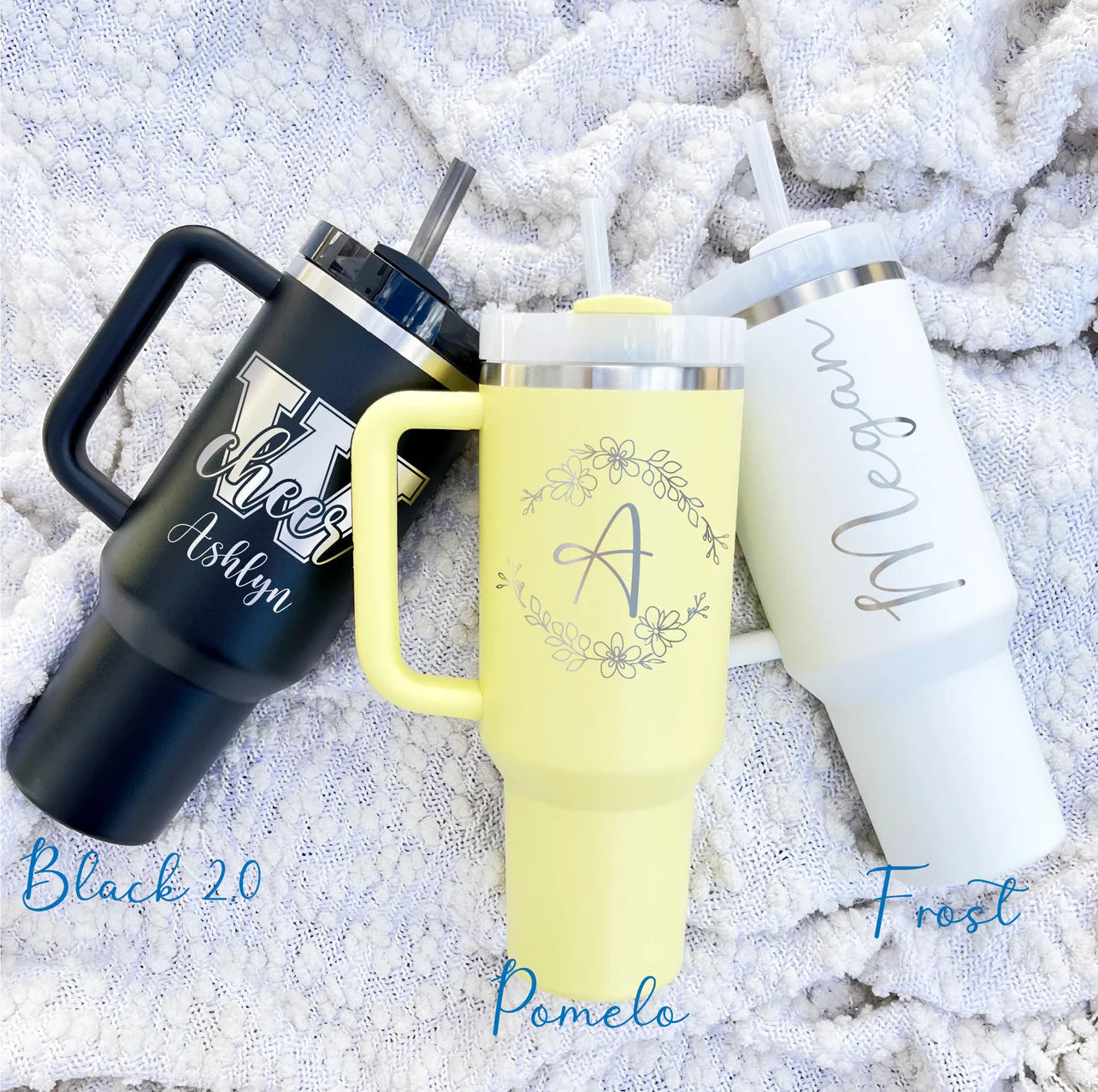 40oz Stanley Quencher Tumbler | Laser Engraved Stainless Steel Tumbler | Personalized Tumbler with lid and Straw.