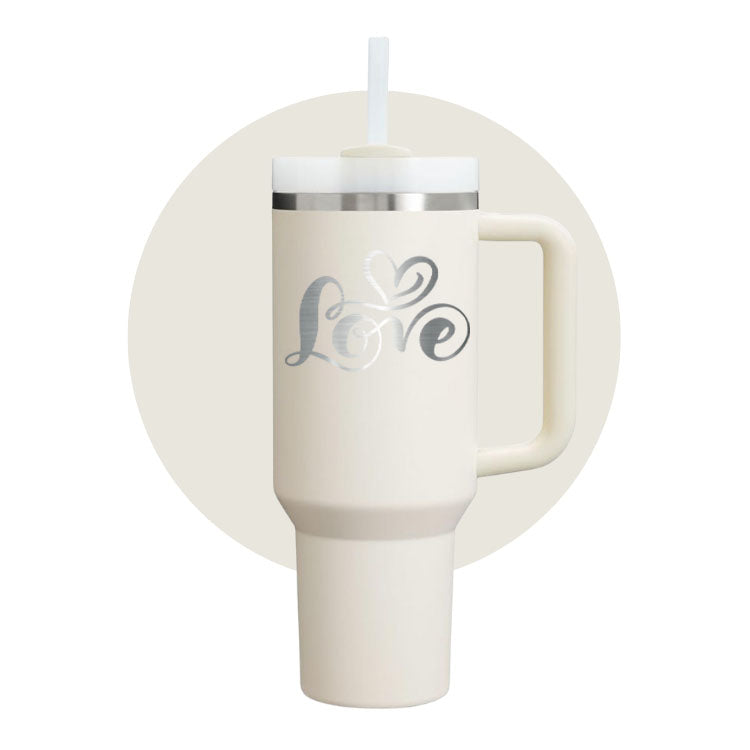 40oz Stanley Quencher Tumbler | Laser Engraved Stainless Steel Tumbler | Personalized Tumbler with lid and Straw.